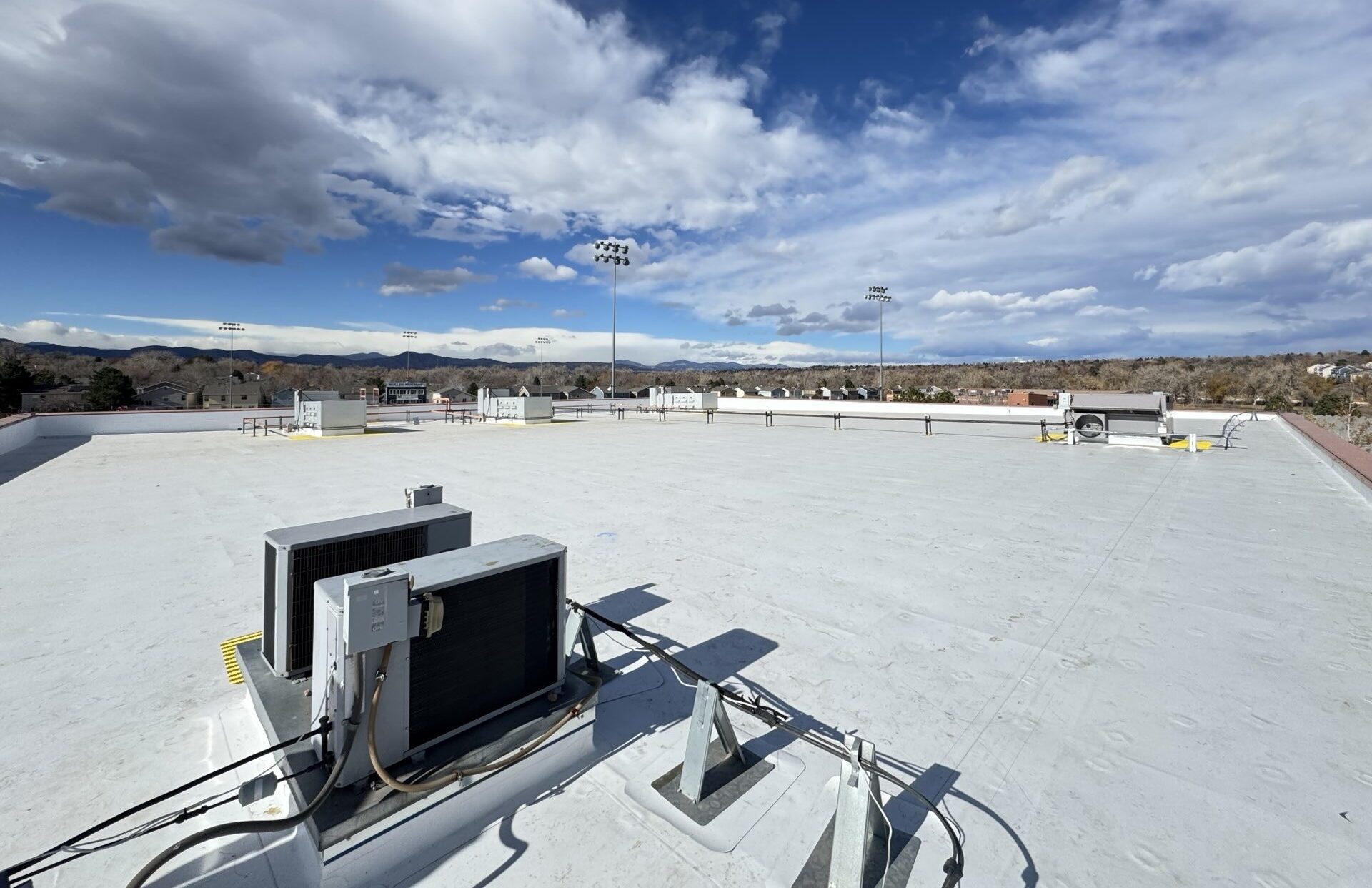 Beacon Roofing was selected to complete a full commercial roof replacement for Mullen High School after the campus experienced extensive and recurring roof leaks caused by an aging ballasted EPDM roofing system.